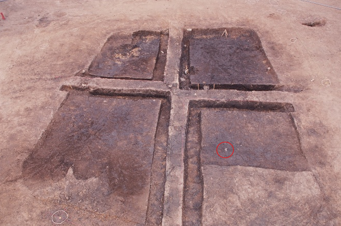 発掘調査の結果、竪穴建物や掘立柱建物、溝、土坑などが見つかりました。山口県内では初めての出土例となる「三川私印」の銘をもつ古代の銅印をはじめ、中国産の青磁や白磁、近畿や東海地方産の緑釉陶器や灰釉陶器が出土しました。