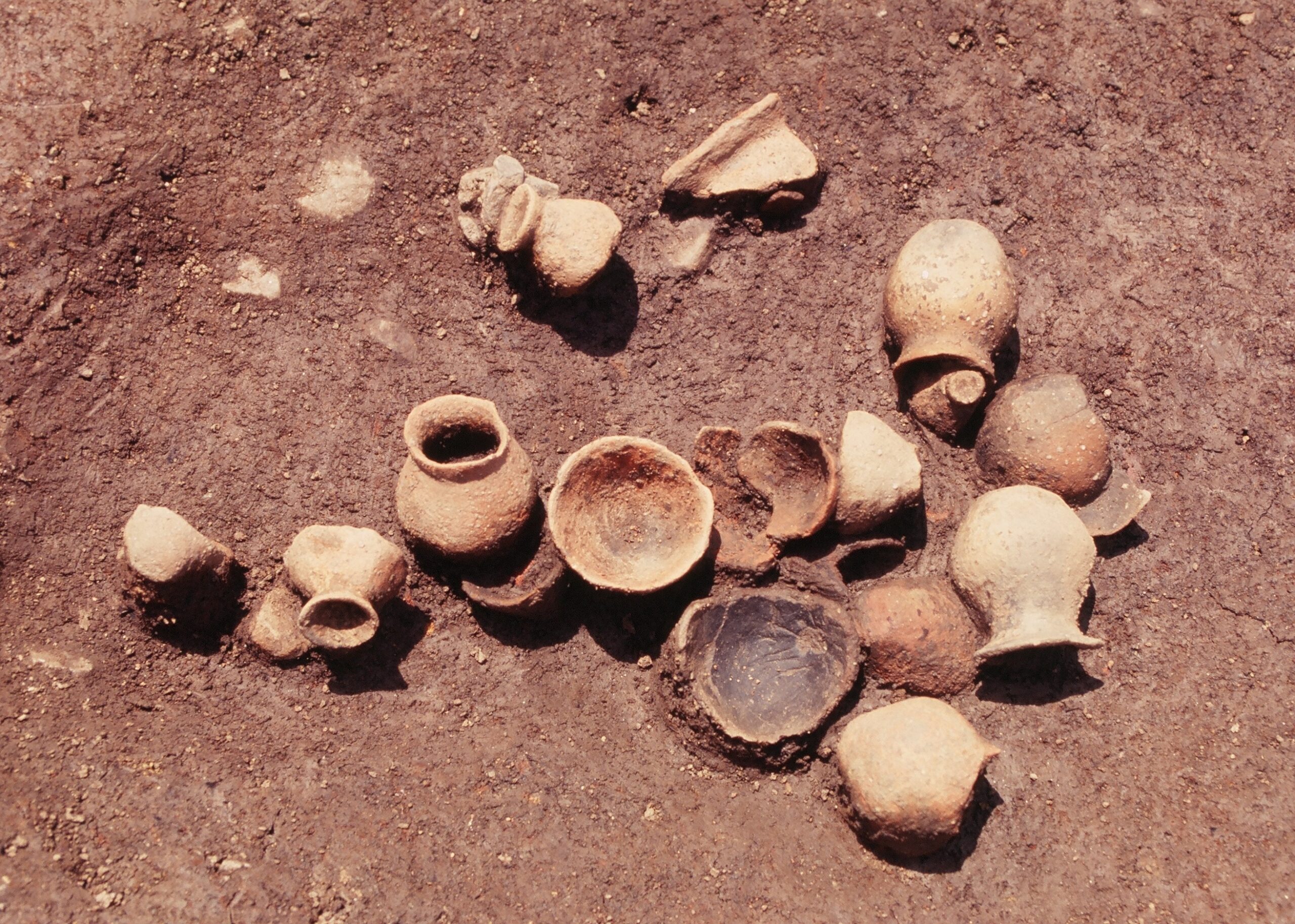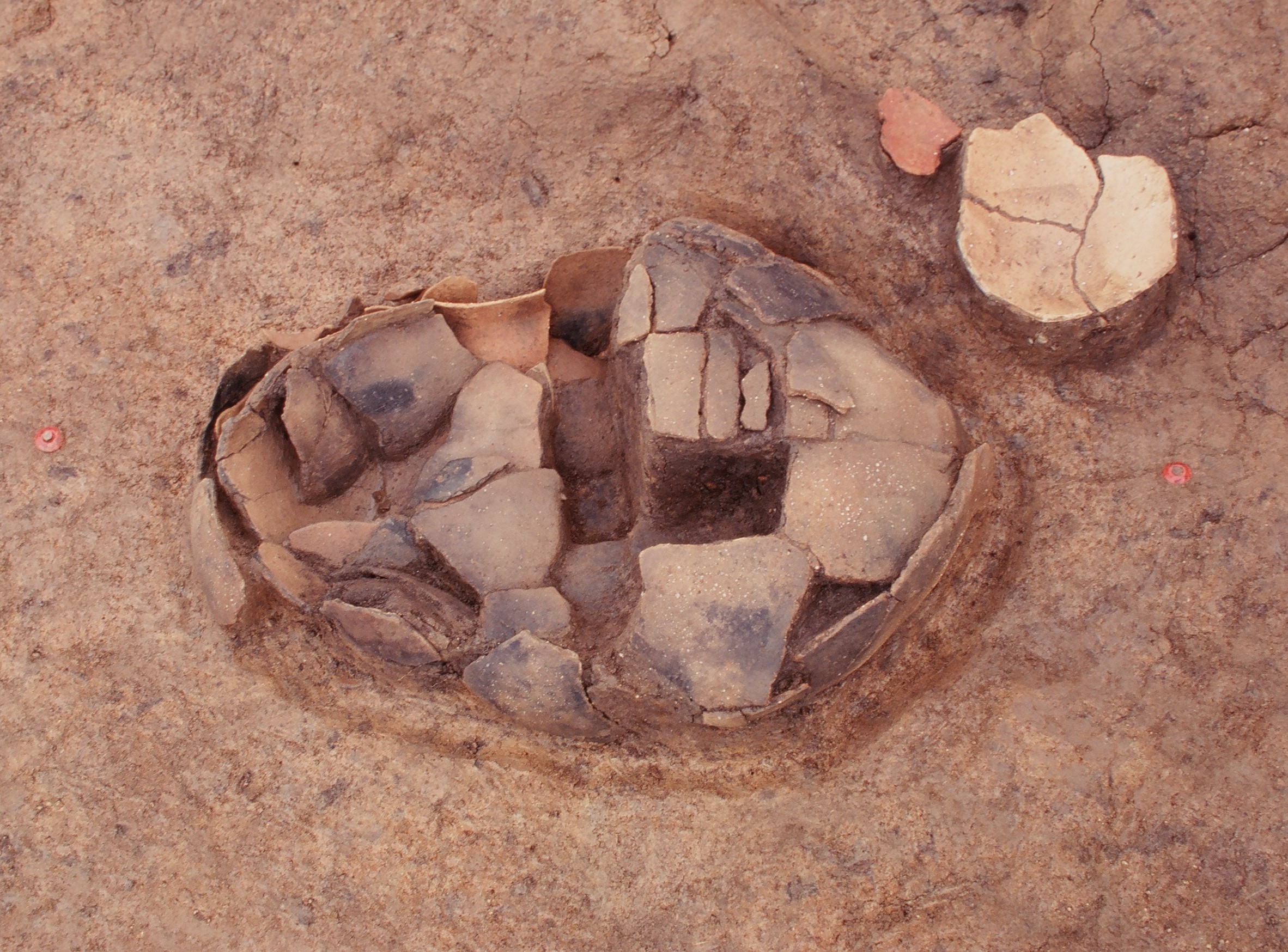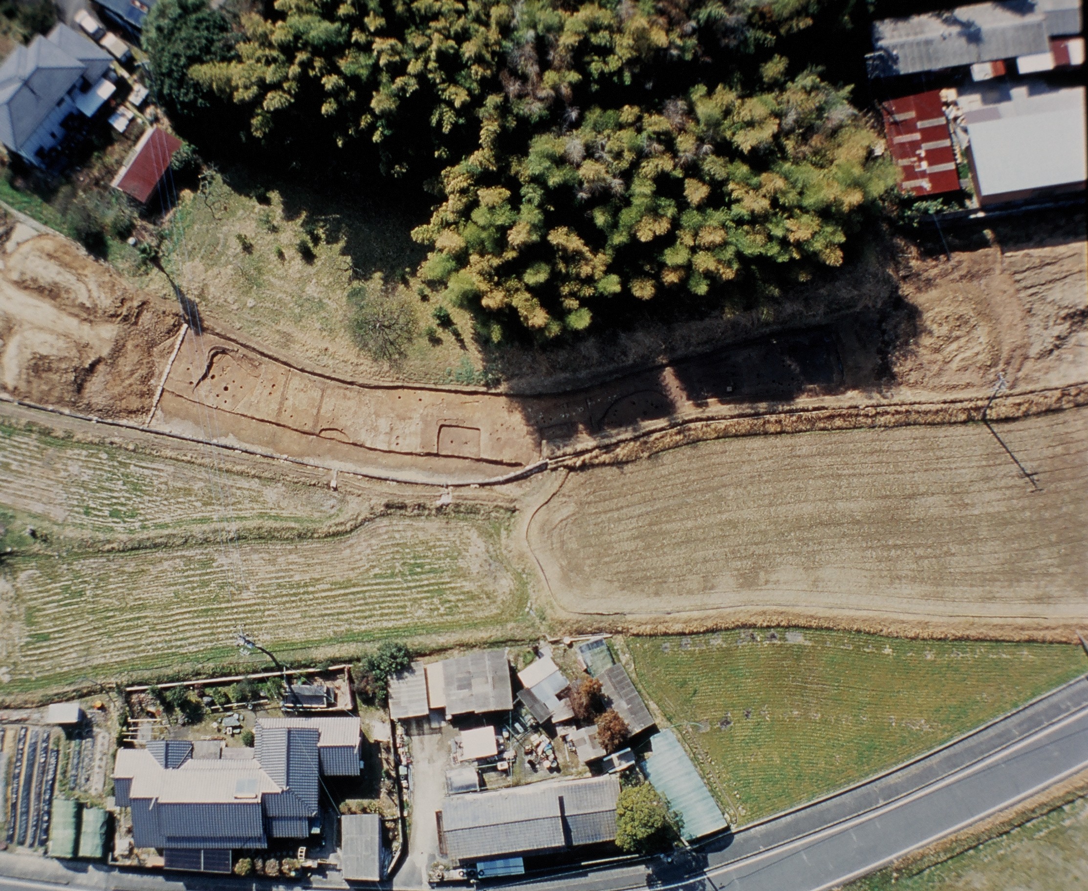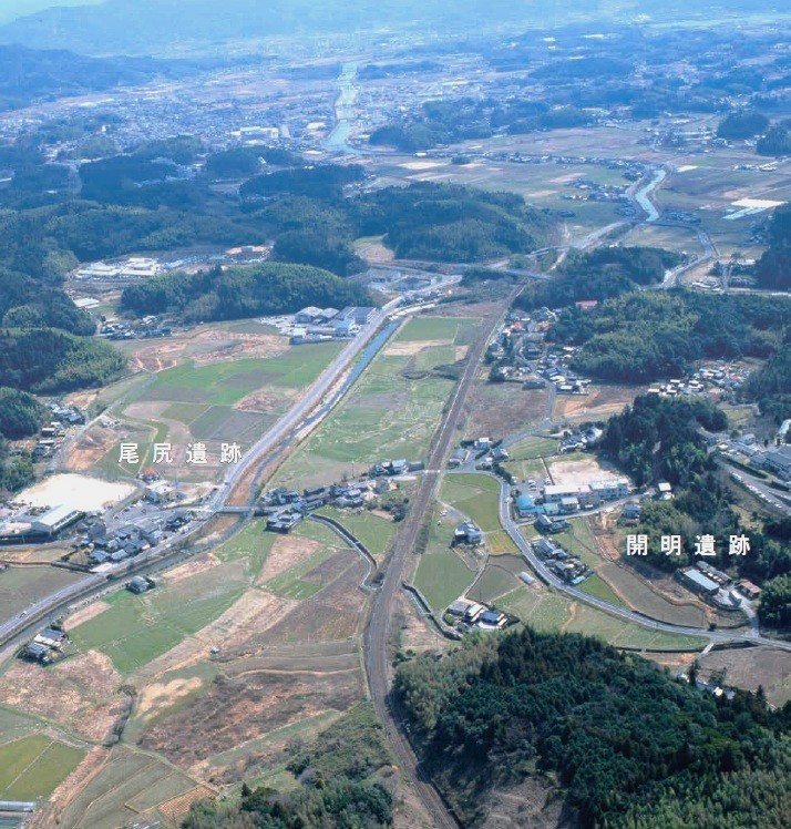 開明遺跡は、田布施川中流域右岸の丘陵先端部に位置する弥生時代中期から古墳時代前期を主体とする集落跡で、竪穴建物のほか、掘立柱建物、溝、土器棺墓、土坑などが見つかりました。出土した弥生土器は、瀬戸内、九州、山陰等の特徴をもっています。この他にも船を描いたと考えられる絵画土器や分銅形土製品、まとまった状態でミニチュア土器が出土しました。このことから、いろいろな地域との交流があった中心的な遺跡だったのではないかと考えられます。